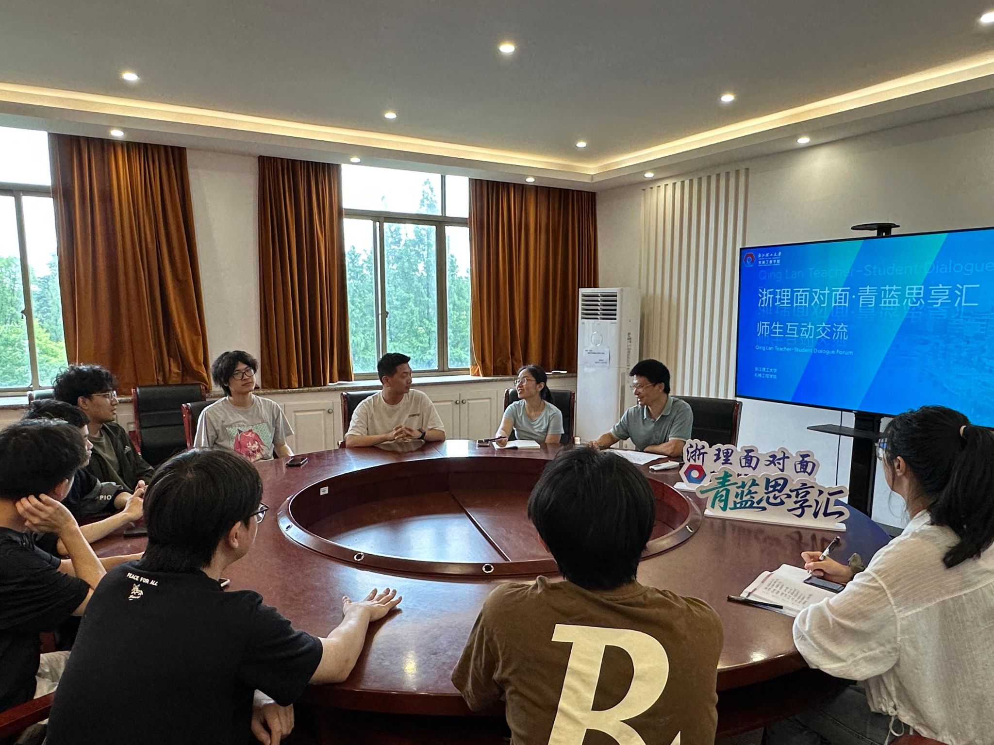依托“浙理面对面”品牌,于6月10日下午在15-308会议室举办第四场“浙理面对面·青蓝思享汇”师生互动交流活动。本次活动以“青蓝共话,育才启航”为主题,聚焦毕业年级机器人工程专业师生对话,专业教师代表贺磊盈、柴馨雪与2021级机器人工程专业毕业生代表围坐交流,围绕大学四年的课程体验、实践感悟与成长困惑展开亲切对话。活动由贺磊盈主持。