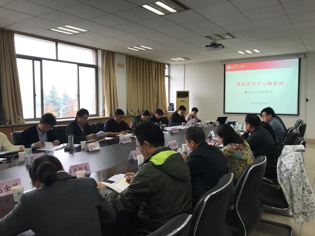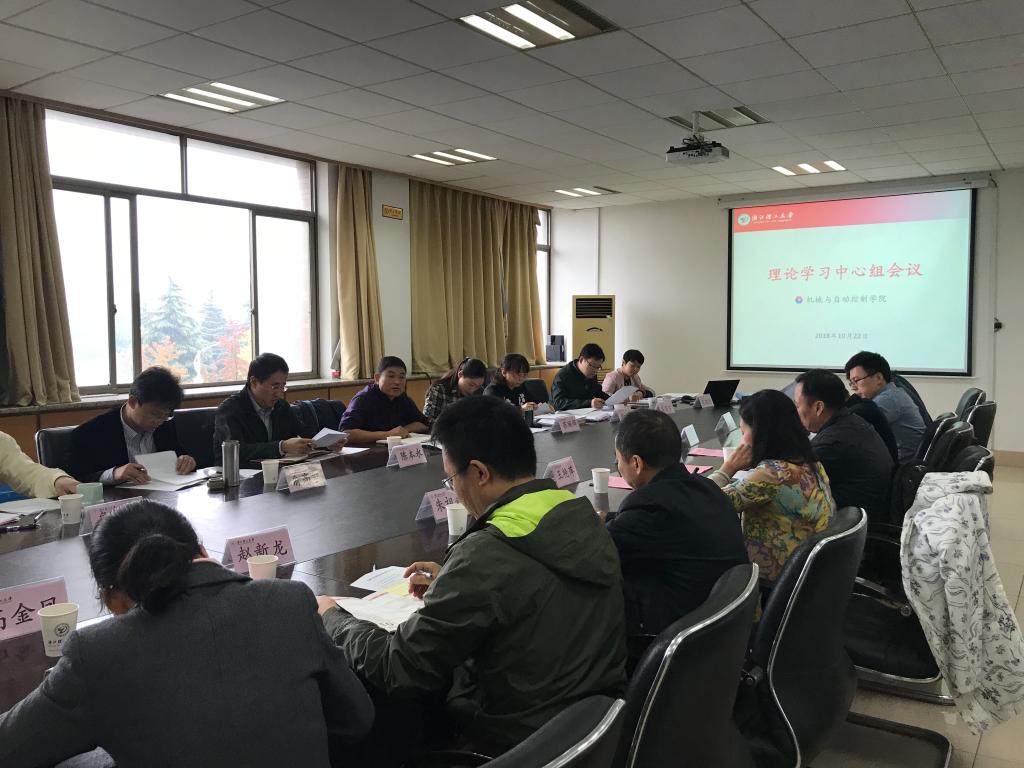 10月22日上午,机械与自动控制学院党委理论中心组学习会在学院会议室召开。参加此次学习会的有学院党委书记潘海鹏、院长兼副书记陈本永、副书记苏丽辉、副院长俞高红、副院长胡明、副院长鲁玉军、党委委员吴震宇以及各系、中心、办公室主任、教工党支部书记等。会议由潘海鹏主持。