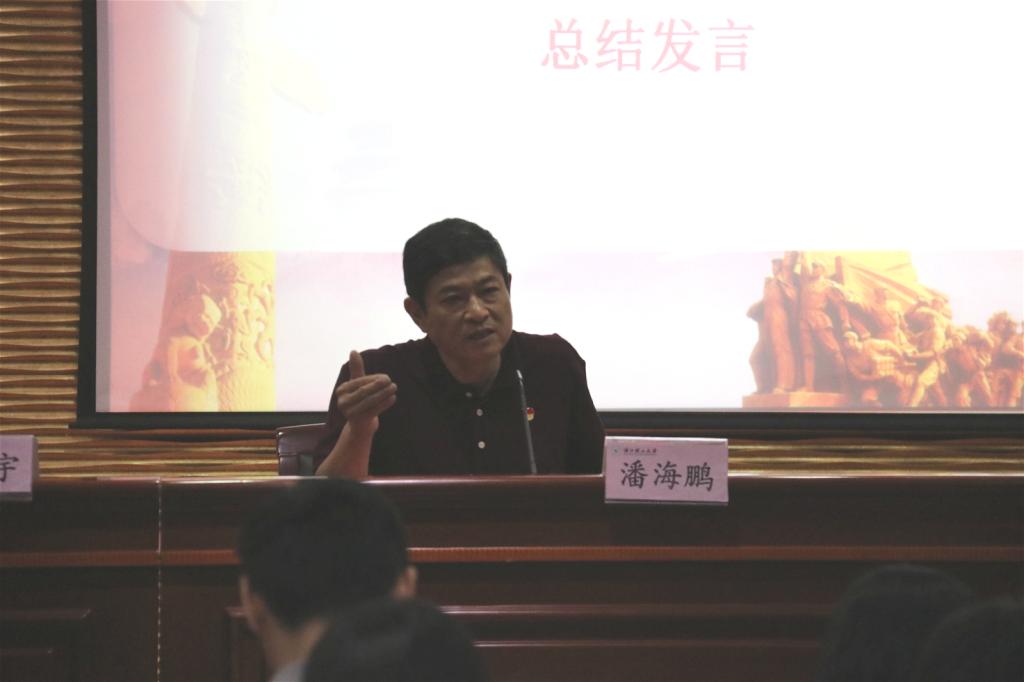 最后,潘海鹏总结发言。他首先肯定了各党支部和师生党员们的工作与努力,指出党员不仅要自身优秀,还要带领身边的其他同志一同进步,做经得起推敲的优秀人才,为党组织注入正能量。同时,他就相关暑期工作进行安排,并再次强调广大党员要通过多种途径加强理论学习。