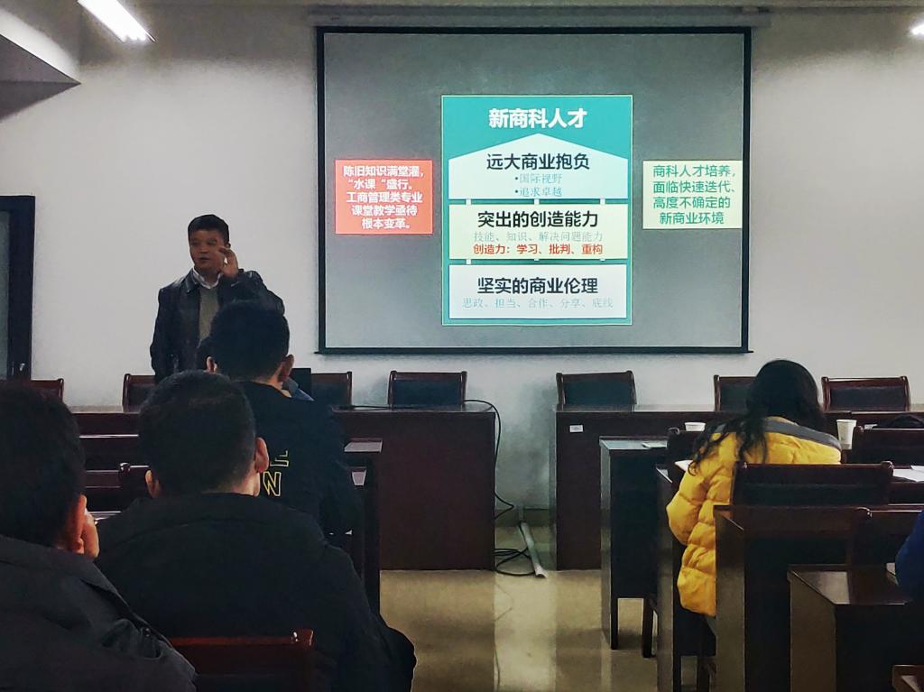 11月21日下午,一场以“激活基层教学组织效能,构筑教师教学发展网络,营造开放共享教学文化”为主题的教学研讨会在25号楼1610室顺利开展。会议上,来自浙江工业大学的机械工程系主任戴勇教授、浙江工商大学工商管理学院的副院长俞荣建和企业管理系主任向荣教授分别做了报告,并与在场的众人就各类问题进行了研讨。此次会议由机械与自动控制学院、经济管理学院、建筑工程学院共同组织主办,机械与自动控制学院副院长胡明、经济管理学院副院长王世雄、建筑与工程学院副院长吴大志出席此次会议。