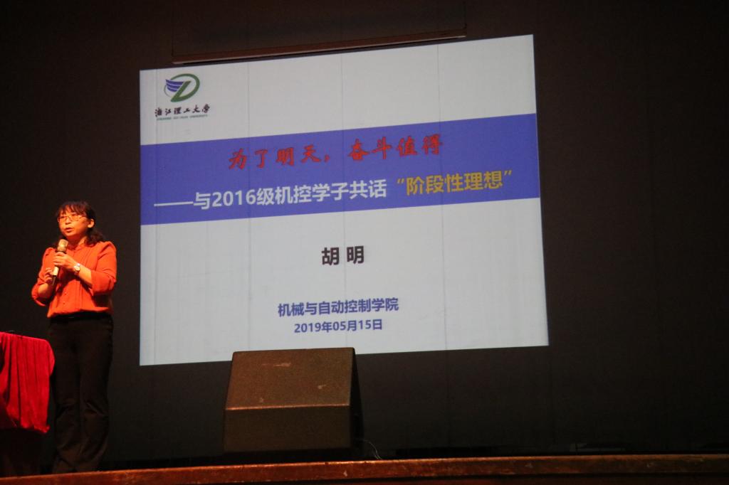 5月15日下午,机控学院在小剧场举办“奋斗的青春最美丽”之考研就业动员会暨院长报告会第六讲。学院教学副院长胡明教授、党委副书记苏丽辉副教授、流体工程系金浩哲副教授、海天塑机有限公司招聘主管张程斐、17级控制科学与工程专业苏明垢以及年级辅导员、班主任出席。