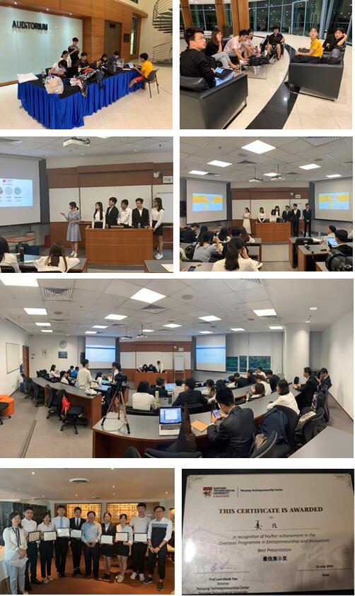 为推进学院实施教育国际化工程,扩大与世界一流大学的交流合作,进一步拓宽学生国际视野,提高学生创新创业意识和实践能力,培养创新创意创业卓越人才,体验世界名校的创新创业课程体系和学习氛围,学院于2019年7月3日-7月16日选派21名优秀学生(其中本科生16名,研究生5名)赴新加坡南洋理工大学参加为期14天的创业创新海外研修学习与交流。