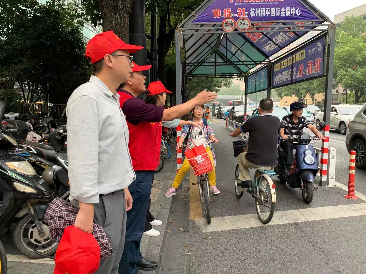首先,各位党员在社区工作人员的带领下参观了杭州青年运动史馆,在学习参观校红色文化讲习馆的基础上,就青年运动的历史沿革切入,更加深刻了解和学习中国革命、建设和改革开放的各个历史时期不懈奋斗的辉煌历史和重要经验。随后,潘海鹏、苏丽辉、吴震宇一行上门慰问了社区中的三位退伍老兵,听老兵讲红色故事,感悟初心力量,并对他们为美好生活所做的奉献与牺牲表示诚挚感谢。最后,各位党员走上社区服务先锋岗,开展街头平安交通劝导志愿服务,提醒来往人群注意行车规范和人身安全,行人纷纷表示感谢。