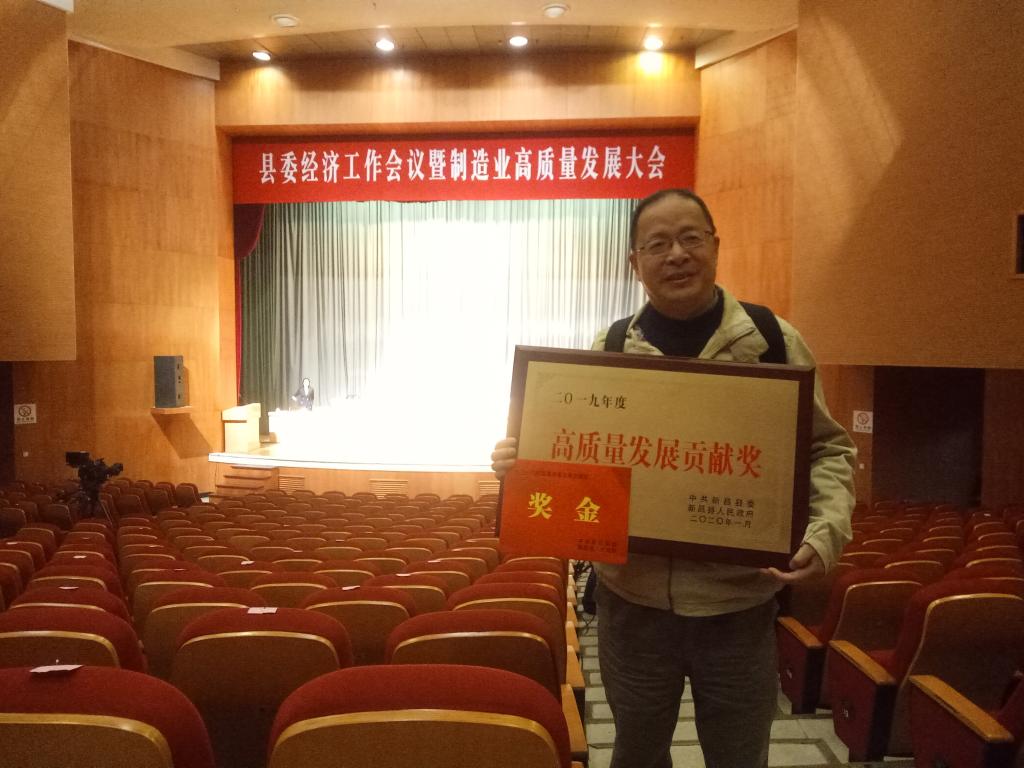 技术创新研究院有限公司荣获2019年度高质量发展贡献奖,负责人胡旭东上台领奖。