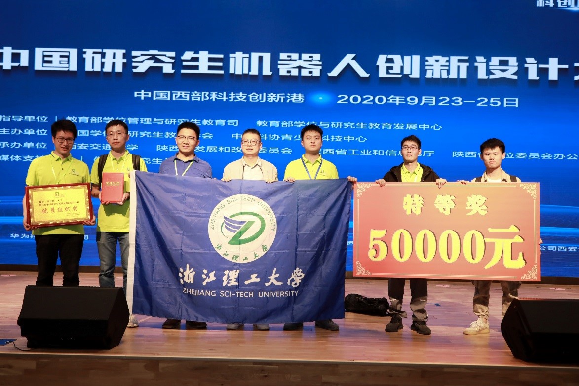 大赛以专家网评、现场评审、答辩评审方式进行。学院参赛作品《面向铝合金结构件的五轴加工机器人机构设计研究》(指导老师:叶伟、柴馨雪,参赛队员:徐灵敏、沈旭东、项垚、饶晨阳、谢镇涛)入围特等奖争夺战。争夺战中,徐灵敏专业而又生动地介绍了打破国外封锁的并联机构装备,最终该作品在与众多双一流高校竞争中杀出重围,以第一名的好成绩获得大赛特等奖。《高速稀植水培叶菜钵苗移植机器人》(指导老师:童俊华、武传宇,团队成员:孟青新、王一博、满号、吴强、邱铭涛)、《适于水陆环境的爬游式仿生机器人》(指导老师:陈刚,参赛队员:遆肖聪、卢裕旺、杨鑫、屠佳骏)获得三等奖,学校获优秀组织单位奖。