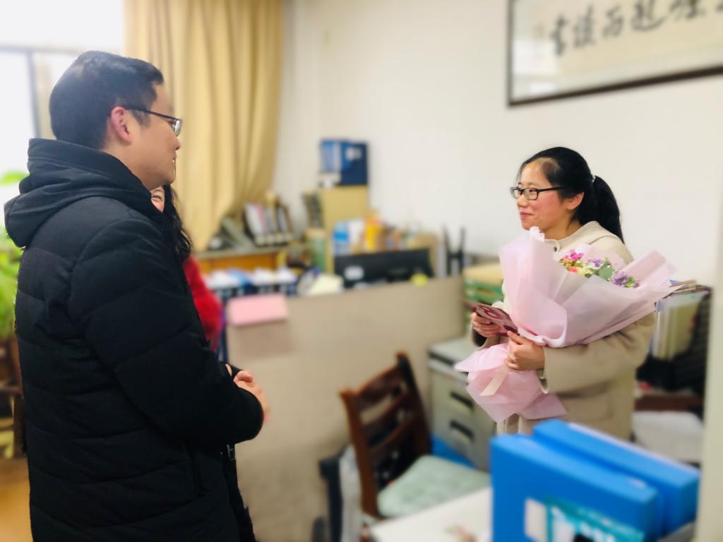爱心播撒希望,奉献点亮芳华。在第111个“三·八”国际妇女节到来之日,机械与自动控制学院党政领导、工会主席走访慰问了学院全体女教职工,感谢她们用心用爱为教育事业和学院发展奉献芳华,并送上鲜花和祝福。慰问中,领导们特别关心了解新进女教职工和青年女教师的发展近况,鼓励她们敢梦敢拼,用人格魅力教育影响学生,做学生筑梦路上的新时代“女神”。