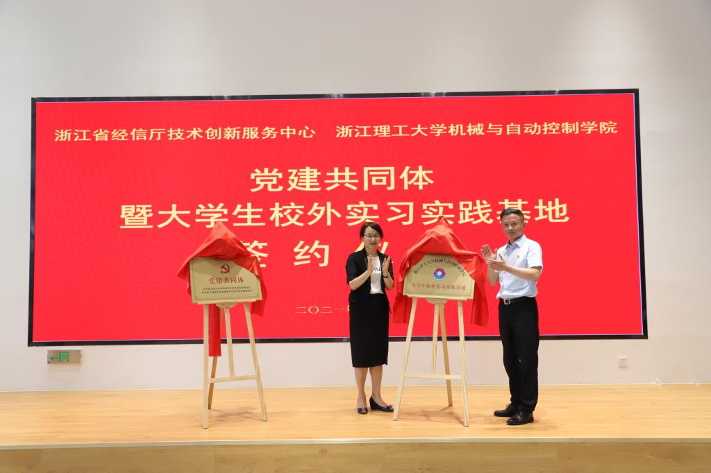会上,徐吉成介绍了浙江省技术创新服务中心和白塔·浙江省全球精准合作服务综合体建设情况,苏志俭介绍了机械与自动控制学院办学历程、人才培养、学科特色等相关情况,罗畅就杭州紫元置业有限公司相关情况做简要介绍。随后,双方签署了党建共同体和大学生校外实习实践基地协议,聘请省技术创新服务中心精准合作部主任徐之明等四人为大学生校外实践导师并颁发了聘书。盛勇军和姚珺共同为党建共同体和大学生校外实习实践基地揭牌。