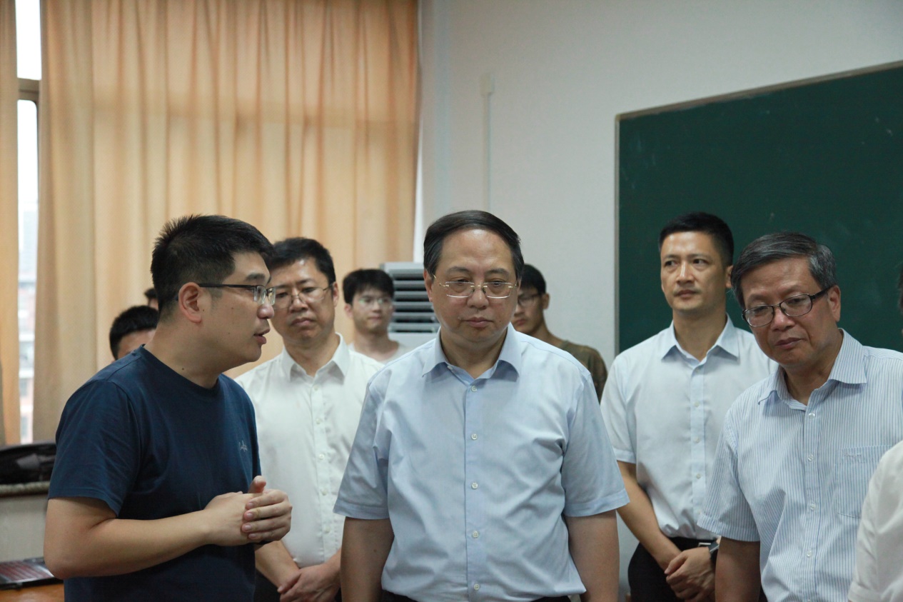 王宏一行首先参观了机械与自动控制学院“采摘机器人”实验室,现场观摩茶叶采摘机器人、番茄采摘机器人、草莓采摘机器人实验运行。