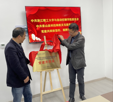会上,刘利忠介绍了常山县科技创新情况,苏志俭介绍了机械与自动控制学院办学历程、人才培养、学科特色等相关情况,潘海鹏就常山研究院相关情况做简要介绍。随后,双方共同签署了党建共同体协议。刘利忠和苏志俭共同为党建共同体揭牌。