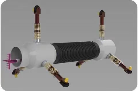 在生活中,厨房的下水管经常遇到堵塞的情况,清理堵塞物由此成为厨房清洁的一大难点,针对此现象,常见的解决方式有:1、拆卸水管2、采用疏通剂3、采用管道清洁器。现设计的能够自主清理管道的机器人,可以实现自由移动、图像反馈、清理堵塞、自适应各个管道地形的等基本功能,同时做到防水、自清理等多个基本要求。作品机械结构内部由舵机及其连接件构成,头部嵌有摄像头与清理管道的机械爪,机械爪可旋转,外部包裹有可伸缩的软管,在外壁上设有由弹簧、轮子、电动机组成的“足”,可以做到适用不同大小的管径。动力部分利用轮式移动的方法,计划采用轮电机带动小轮转动前进;同时筒内弹簧件使轮子自由伸缩,适应不同直径的管道;波纹管用于关节部分的防水和适应各类管型,头部/尾部防水构造用于摄像头处和尾部电机的防水,清理部分主要是用于缠绕并带出堵塞物;机械方面采用相邻关节平行连接的方式,机器人在单关节的连接处能绕单轴旋转,由于相邻两关节之间的旋转轴平行,机器人可以实现转向运动;利用舵机作为空间运动的动力源,并且将相邻舵机的输出轴以平行的形式摆放,舵机间以连接支架相连。