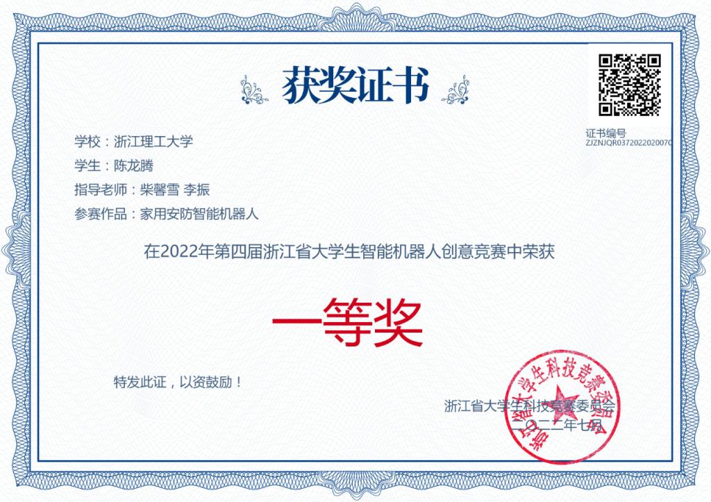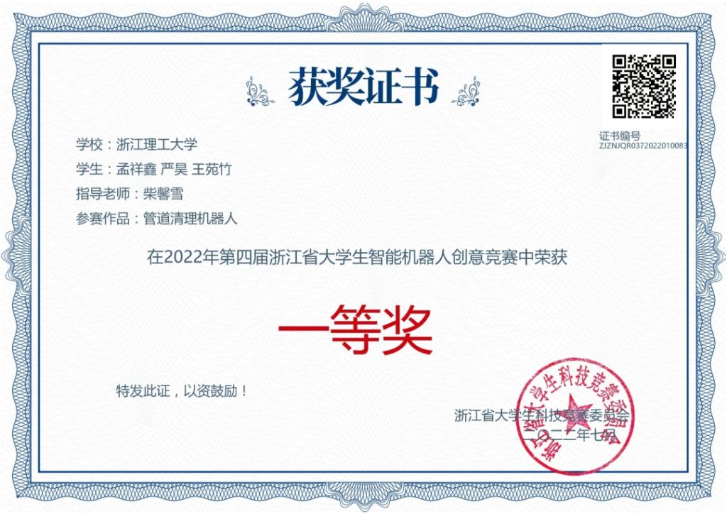 学子孟祥鑫、严昊、王苑竹的“管道清理机器人”,廉捷、邱诗杰、王晨的“消毒服务一体化的家居防疫机器人”,陈龙腾的“家庭安防智能机器人”,郑杰、谌业清、祝羽的“电磁魔方机器人”获得省赛一等奖。