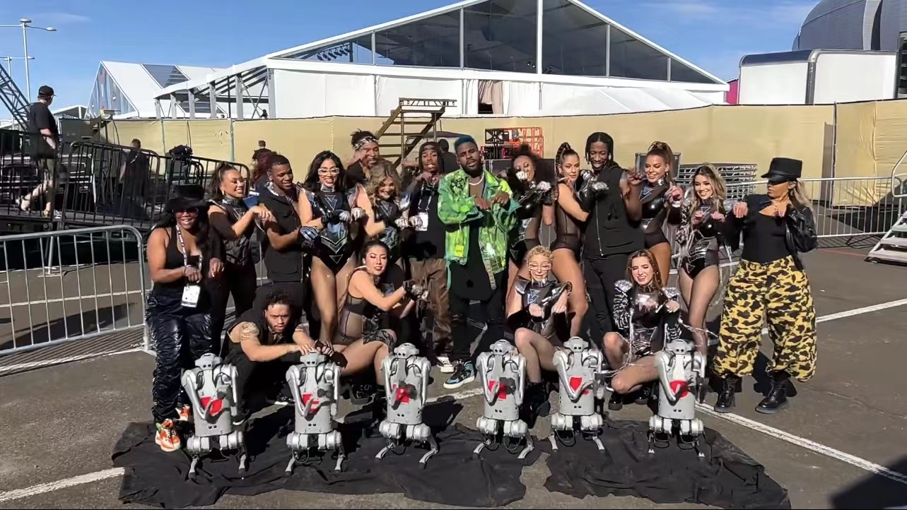 Jason Derulo舞蹈团队为机器狗Go1专门设计了舞蹈动作,同宇树的工作人员一起连续奋战,最终呈现了一场时尚与前沿科技融合的视觉盛宴,燃爆全场!