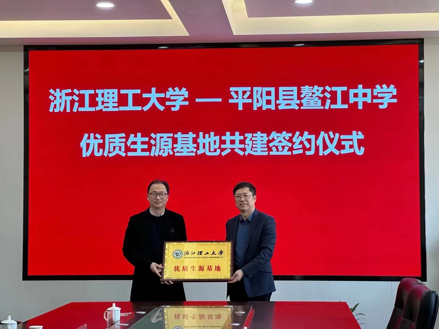 “优质生源基地”签约授牌仪式在平阳县鳌江中学举行。鳌江中学校长李伟君,副校长王大府、杨绍辉、李洪波、易会潮,总务处主任、校长助理陈永建,各年级负责人及教师代表,葡京娱乐场-新葡京娱乐场