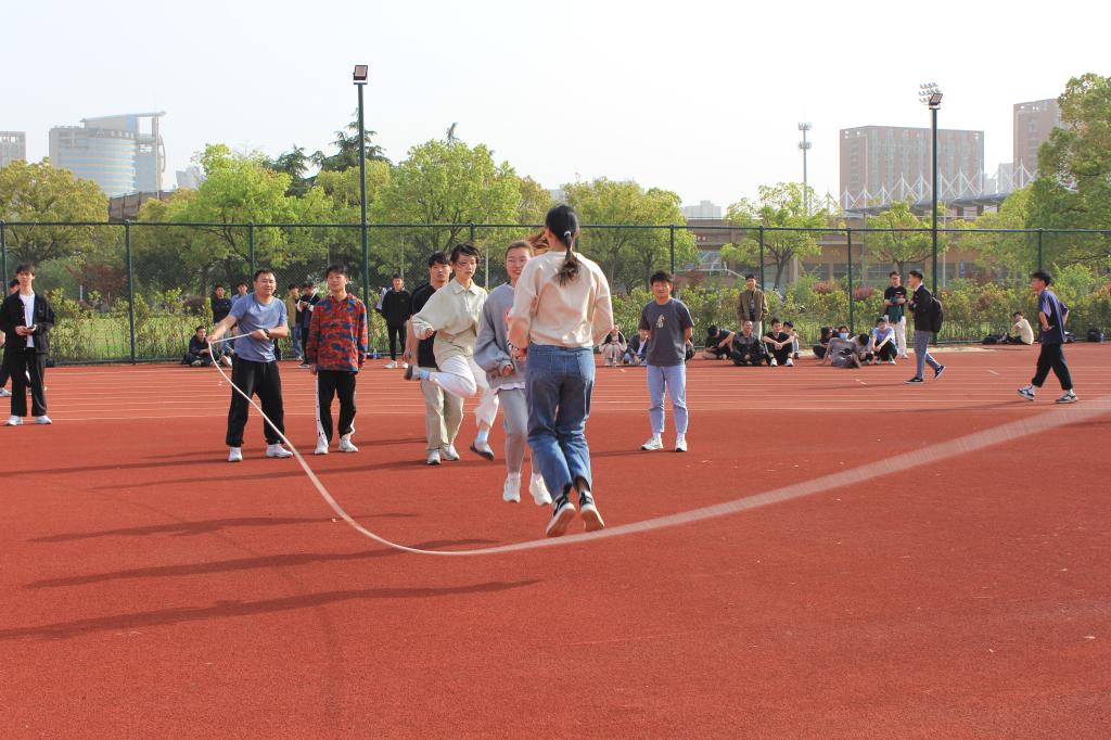 举办班级团体跳绳比赛,2022级本科生与研究生共27个班级迎着春日的暖风,在北田径场上跳出热情、跳出健康、跳出快乐。队员们个个身姿矫健、轻巧灵活,充分发扬团队合作精神。最终,22级本科生机电2班以19秒60的好成绩获得冠军,22级研究生机械工程8班、22级本科生机电4班分获二、三名。同学们纷纷表示,通过本次活动增强了班级凝聚力,期待有更多的机会能够走出寝室,感受运动的魅力,在体育运动中收获快乐、收获友谊。