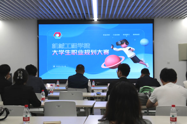 大学生职业规划大赛在15号楼102举行,学院党委副书记陆秋萍、辅导员曾伟、唐艺林担任评审,大赛特别邀请泰瑞机器股份有限公司人力资源总监刘聪担任企业评审,现场15名选手参与答辩。