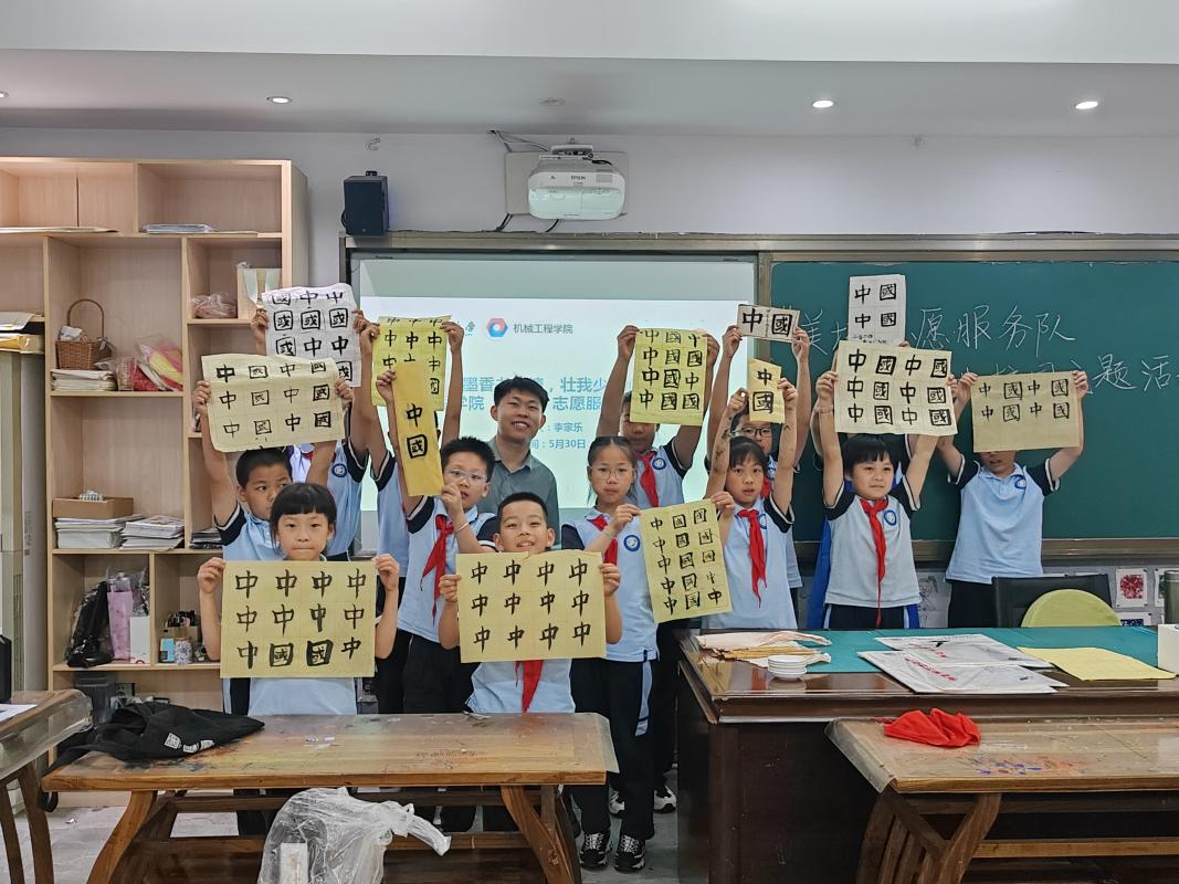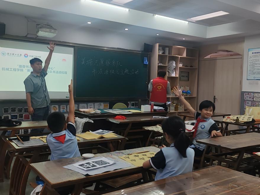 在六一儿童节到来之际,为进一步传承弘扬书法文化,培养学生良好书写习惯,感受汉字魅力,5月30日下午,“美塘”宣讲团指导老师李家乐带队走进上城区筑英小学,为小朋友带来了一堂生动活泼的“墨香书法情·壮我少年心”书法小课堂活动。