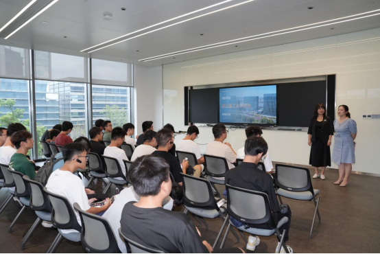 最后,师生一行来到了杭州西奥电梯有限公司,这里是西子国际电梯产业的核心基地。高级工程师高慧玲详细介绍了现代化的生产线、精密的检测设备以及严格的质量控制体系,让同学们深刻感受到西子国际从“中国制造”向“中国智造”迈进的坚定步伐。在参观过程中,西子三家公司的HR和工程老师随行答疑,与同学们就电梯技术的前沿趋势、产品创新等话题展开了热烈讨论。