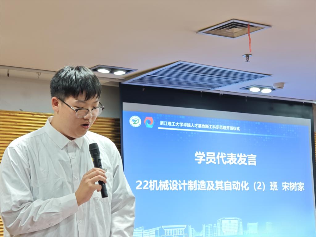 导师代表陈先立发言。他表示,学校实施新工科人才培养计划对于同学们而言是一次宝贵的自我提升的机会,希望同学们能够通过在示范班的学习锻炼培养个人跨学科知识整合能力、创新思维能力、团队合作与领导力以及国际视野,全方位提升个人核心竞争力,成为一名卓越的新工科人才。