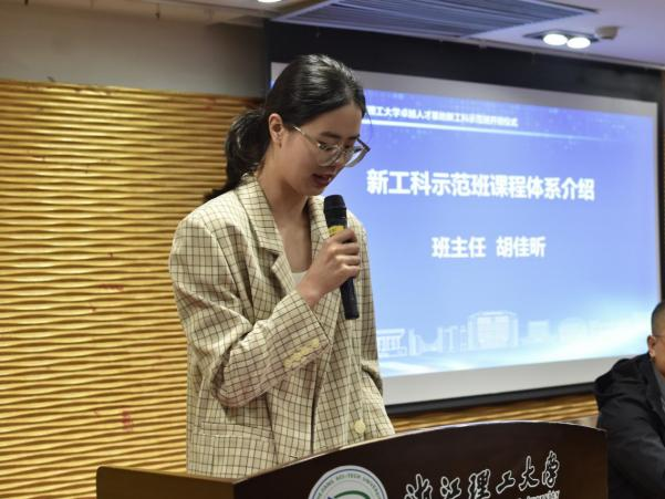卓越人才基地新工科示范班班主任胡佳昕介绍新工科示范班课程体系。