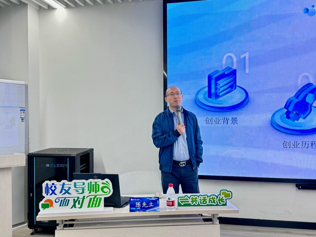2000级机械设计制造及其自动化专业校友、杭州立腾科技有限公司执行董事陈先立作为“校友导师”,为学员们带来题为《回归校园,共话创业之路》的专题讲座,分享其作为创业者的心路历程和人生经验。