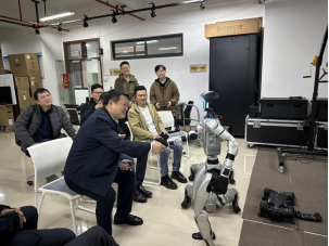 调研期间,詹福章一行实地走访了浙江省人形机器人协同创新中心,详细了解中心的基本概况、科研进展、创新成果及未来发展规划等情况。调研团队现场观摩了人形机器人、仿生机器狗的演示操作,并亲身体验了人机交互系统,深入感受前沿技术应用的实际效果。