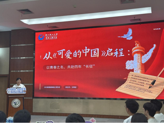 王梅宝的微班课以方志敏烈士的《可爱的中国》开篇,通过今昔对比,生动展现了祖国的辉煌发展成就,激发学生们的爱国爱党热情。同时,王梅宝结合自身经历与感受,对班级在学业、学科竞赛等方面取得的优异成果予以赞扬与肯定;聚焦大学生面临的困惑,深入剖析,为学生制定大学四年规划提供思路,激励学生确立目标,制定清晰的大学规划,与同学们携手以青春之名,共赴四年“长征”。
