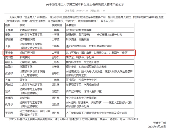 学院始终牢记立德树人根本任务,以铸魂育人为核心使命,王梅宝此次获奖是学院在班主任队伍建设与育人实践中取得的重要成果。未来,学院将以此为契机,持续加强班主任队伍建设,充分发挥优秀班主任的示范引领作用,激励更多教师深耕育人沃土,为培养有理想、敢担当、能吃苦、肯奋斗的新时代机械青年贡献力量。