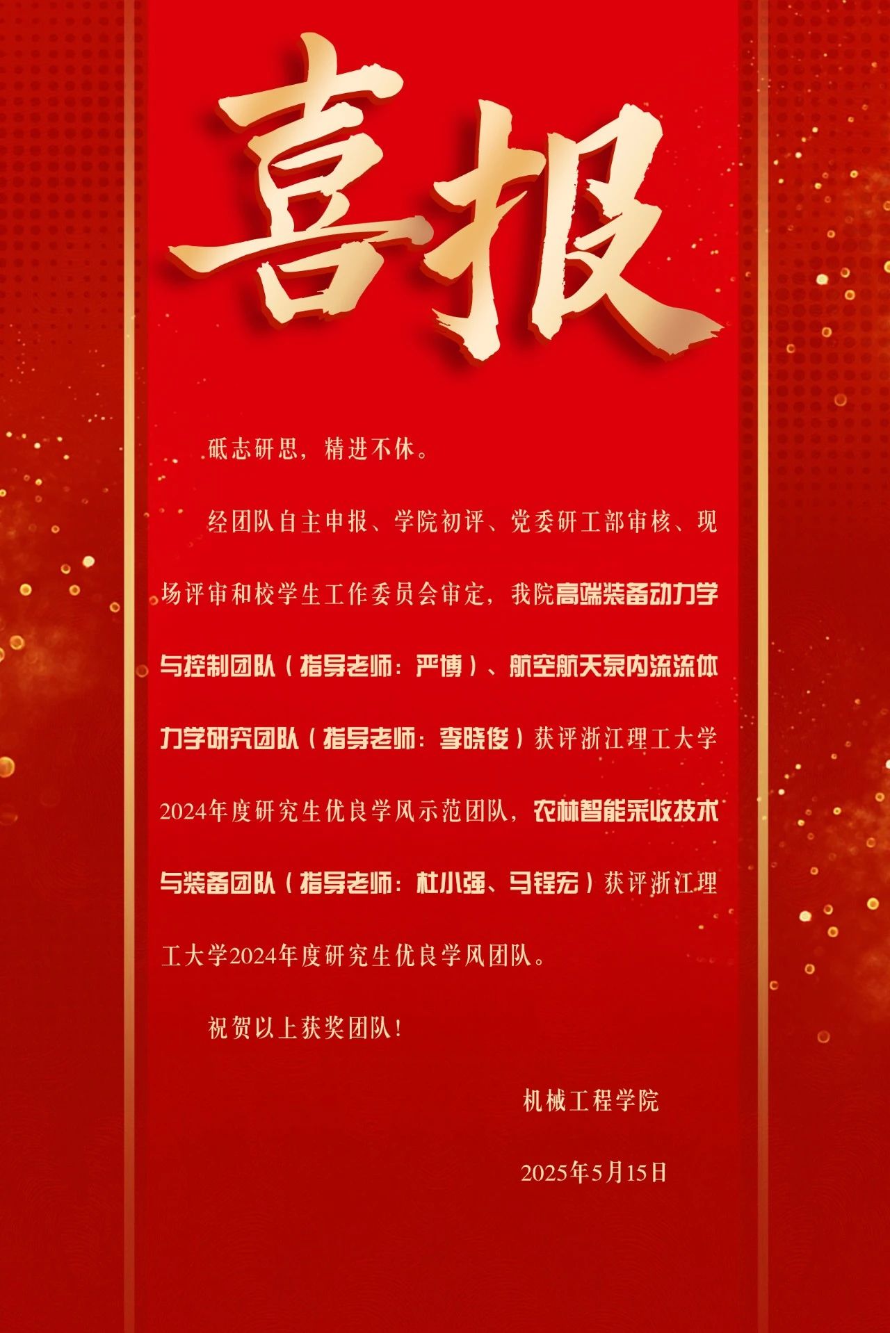 喜报 | 葡京娱乐场 3支队伍获评学校2024年度研究生优良学风(示范)团队