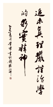 (作者:李鉴霏 书体:行书 内容:追求真理、严谨治学的求实精神)