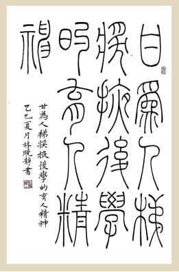 (作者:林晓静 书体:篆书 内容:甘为人梯、奖掖后学的育人精神)