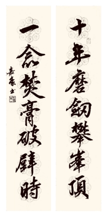 (作者:王嘉豪 书体:行书 内容:十年磨剑攀峰顶,一念焚膏破壁时)