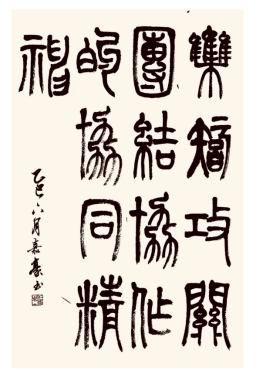 (作者:王嘉豪 书体:篆书 内容:集智攻关、团结协作的协同精神)