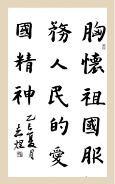 (作者:郭志煜 书体:楷书 内容:胸怀祖国、服务人民的爱国精神)