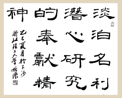 (作者:陶婉滢 书体:隶书 内容:淡泊名利、潜心研究的奉献精神)
