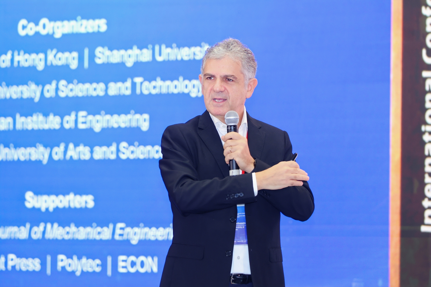 华中科技大学陈学东院士、美国伊利诺伊大学厄巴纳-香槟分校Alexander F. Vakakis教授、《Nonlinear Dynamics》主编意大利罗马大学Walter Lacarbonara教授、波兰卢布林工业大学Grzegorz Litak教授和美国西北大学Kornel F. Ehmann教授分别做大会特邀报告。其中,陈学东院士介绍了精密制造设备的动力学建模及主被动精密控制技术;Alexander F. Vakakis教授线上分享了动力学和声学领域中有工程意义的非线性设计方法;Walter Lacarbonara教授探讨了非线性效应在周期性超材料中的应用;Grzegorz Litak教授介绍了复杂激励下多稳态系统的能量采集方法;Kornel F. Ehmann教授讲授了不同制造工艺中关键物理量的控制和补偿方法。